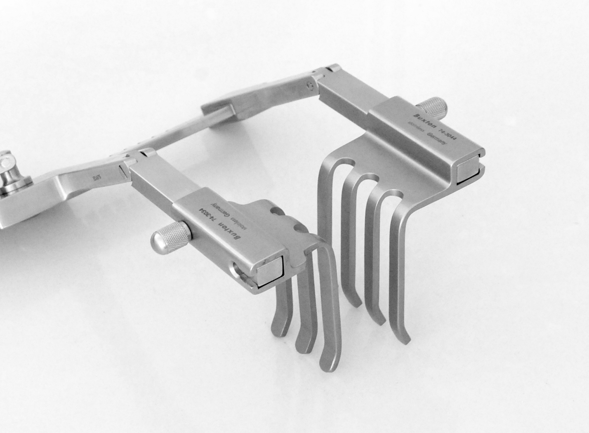 Retractors are used to hold an incision or wound open while a surgeon works. The retractor could also be used to hold tissues or organs out of the way during a surgery. Self- retaining retractors allow hands free operation during a surgery. Retractors with opposable blades which use a screw, ratchet or clamp to hold the tissue apart by themselves are called self-retaining retractors.